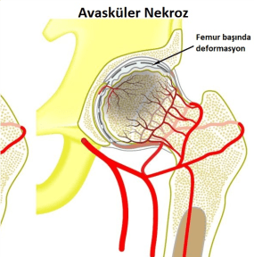 Avasküler Nekrozu (AVN), kemik dokusunun damarlanmasının, buna bağlı olarak kan akışının azaldığı veya tamamen kesildiği durumlarda meydana gelir. Bu durumda etkilenen bölgedeki kemik dokusu beslenemediği için ölebilir. Halk arasında kalça kemiği çürümesi olarak adlandırılan tıbbi adıyla femur başı avasküler nekrozu genellikle kalça eklem bölgesinde meydana gelir, çünkü bu bölgedeki kemikler genellikle daha fazla kan akışına ihtiyaç duyarlar. En sık olarak kalça, diz, omuz ve çene bölgelerini de etkileyebilir. Avasküler nekroza neden olan kemik dokusundaki kan akımında bozulma eğer düzeltilmezse, eklem kemiği bir süre hastalığın ilerlemesi ile genellikle çökebilir. Bu durum genellikle kemiklerde ve eklemde ağrı, hareket kısıtlılığı ve eklem fonksiyonlarında bozulma gibi semptomlara neden olur.